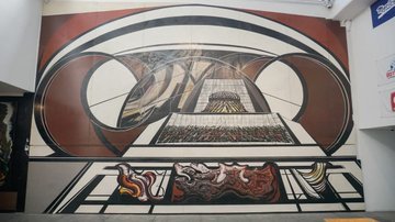 En este recinto se encuentra uno de sus murales más emblemáticos: La nueva democracia, una obra monumental que refleja su visión crítica del poder, la guerra y la lucha social.