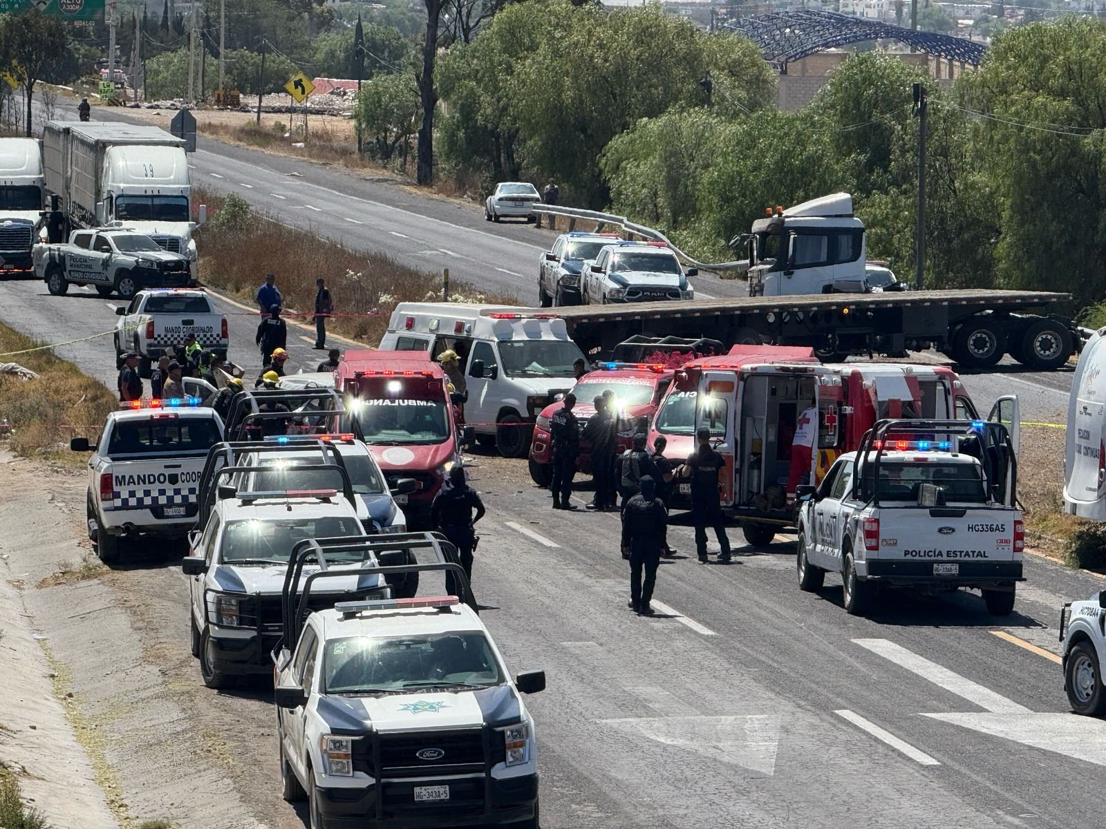 El accidente a la altura de la comunidad El Durazno en San Agustín Tlaxiaca, mantiene movilizados a los cuerpos de emergencia y la policía para controlar el tráfico y permitir las labores de rescate.