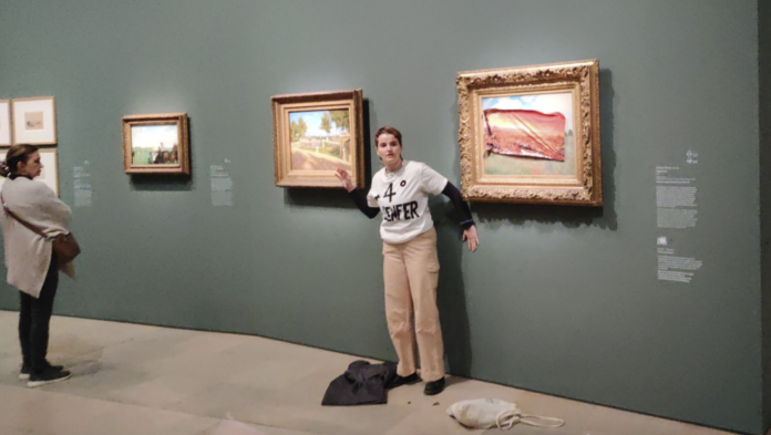 Una activista ambiental fue detenida luego de pegar un cartel adhesivo sobre un cuadro de Monet, en el Museo de Orsay de París, con el objetivo de llamar la atención sobre el problema del calentamiento global.