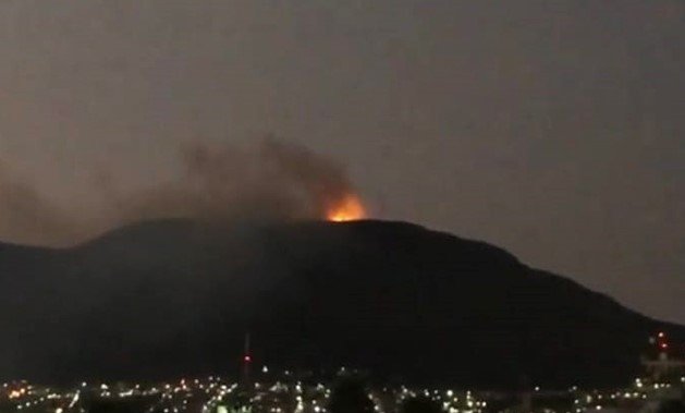 Pachuca, Hidalgo, 6 de mayo de 2022.- El incendio forestal registrado la tarde del jueves en el Cerro de San Cristóbal en la capital del estado, se mantuvo activo pasado el mediodía de este viernes.