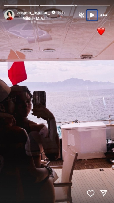 Fue a través de las historias de Instagram de Ángela Aguilar que compartió la primera imagen oficial de sus primeros días como esposa junto a Nodal en su luna de miel.