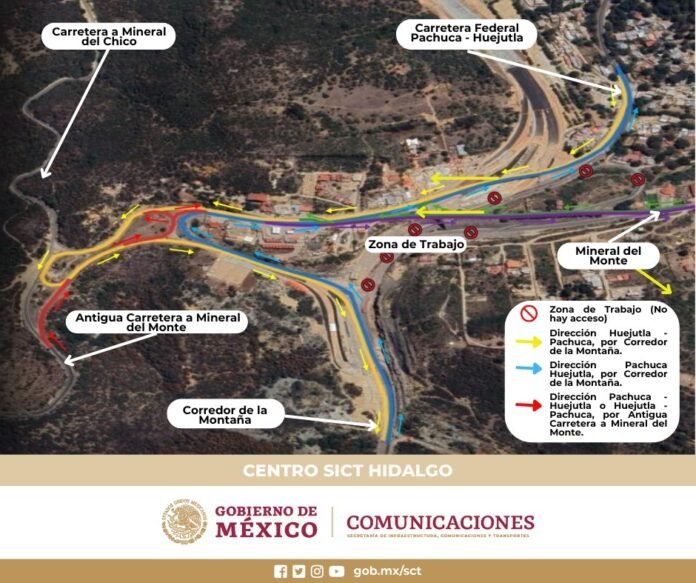 Como parte de los trabajos de la construcción del tramo Entronque Real del Monte-Entronque Huasca, a partir del domingo 1 de septiembre de 2024 habrá cambio de vialidades en el km 10+600, informó el Centro SICT Hidalgo.