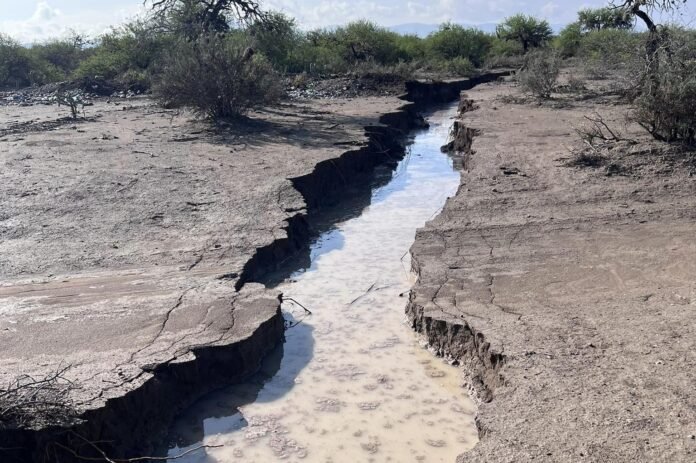 La lluvia dejó enormes grietas de hasta 3km, lo que pone a los ejidos cercanos.