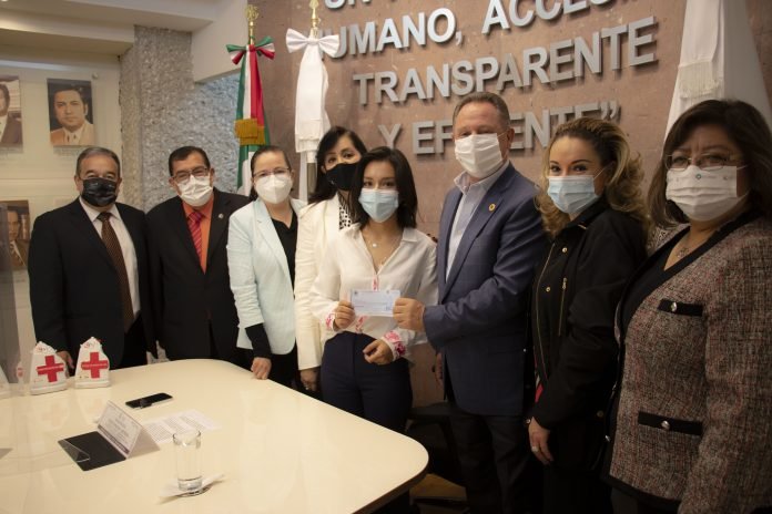 Pachuca, Hgo.- El Voluntariado del Poder Judicial del Estado de Hidalgo, entregó a través de su titular, Janeth Viñas Herrera, un donativo por 228 mil 575 pesos a la delegación Hidalgo de la Cruz Roja Mexicana, producto de las aportaciones del personal que conforma esta institución.
