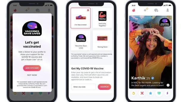 Comunicados de ambas compañías afirman registrar un interés creciente entre los usuarios de la aplicación por la vacunación y la posibilidad de realizar citas en persona. Tinder reporta un incremento de 800% en la mención de la palabra «vacuna» desde el inicio de la pandemia por Covid-19 en 2020. De forma similar, OK Cupid afirmó que la frase «Estoy vacunado» en los perfiles aumentó en mil 400%