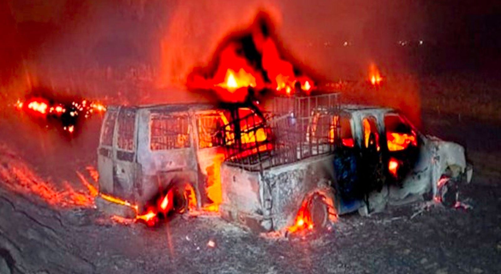 La madrugada del miércoles dos camionetas quedaron envueltas en llamas hasta quedar calcinadas. Se presume que los vehículos contenían bidones cargados con hidrocarburo.