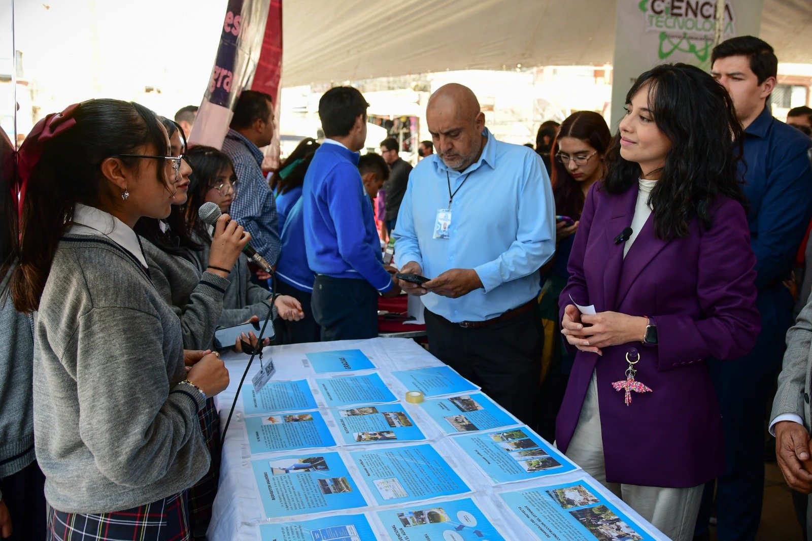 Acompañada por decenas de estudiantes de diferentes niveles educativos, la presidenta expresó satisfacción por la feria, que permite a los asistentes acercarse a la innovación y a los avances científicos, fundamentales para el progreso de Tizayuca.