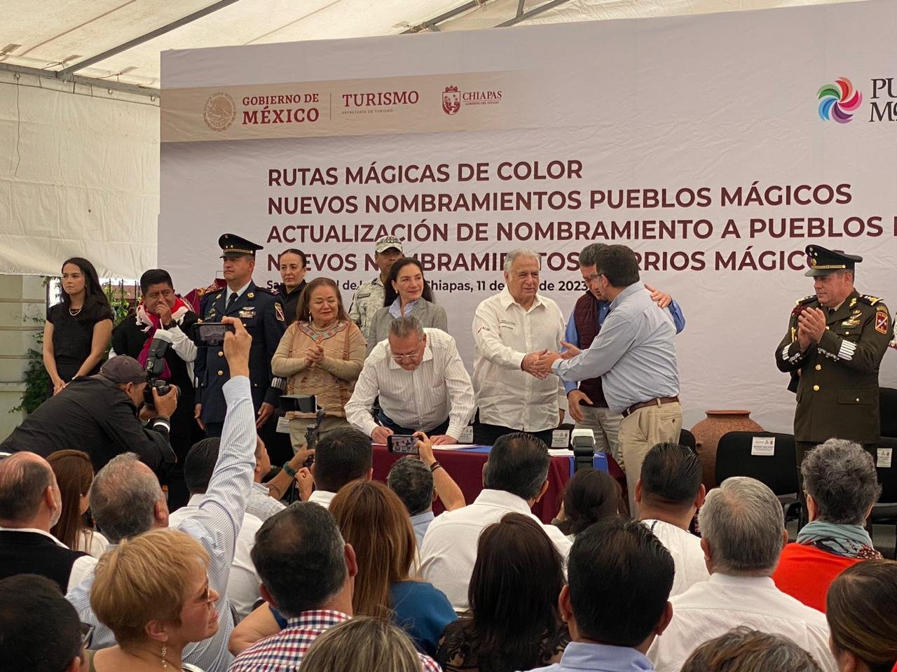 El titular de la Sectur también entregó los nombramientos de Pueblos Mágicos a los presidentes municipales de Copainalá y Ocozocoautla de Espinosa, así como las actualizaciones de nombramientos a San Cristóbal de las Casas, Comitán de Domínguez, Palenque y Chiapa de Corzo.