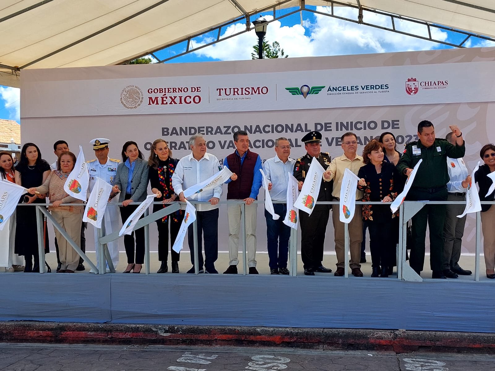 El secretario de Turismo del Gobierno de México, Miguel Torruco Marqués, y el gobernador del estado de Chiapas, Rutilio Escandón Cadenas, encabezaron el banderazo nacional del Operativo Vacacional Verano 2023, que se llevó a cabo en el Pueblo Mágico de San Cristóbal de las Casas, y en el que participarán autoridades de los tres órdenes de gobierno.