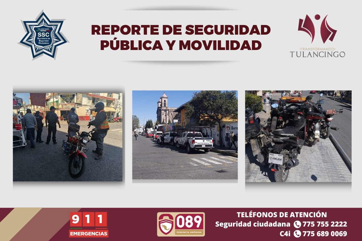 Este martes 28 de enero, la Dirección de Movilidad y Transporte de Tulancingo llevo a cabo un operativo más, de «Moto Segura». A las 10:30 en el crucero de las calles Juan C. Doria y Colegio Militar con la intervención de 24 elementos de la dirección de Tulancingo y de la policía del Estado y cuatro patrullas.