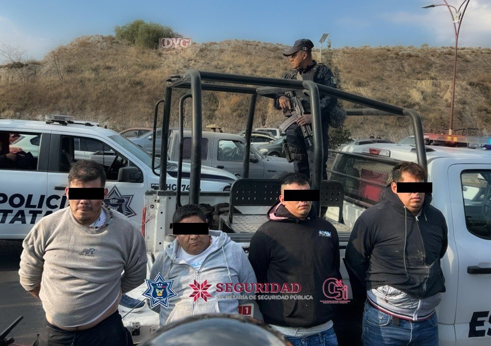 Como resultado de la intervención, fueron detenidos cuatro hombres, identificados con las iniciales A. M. Q., G. G. G., J. L. G. y S. I. A., originarios de los estados de Tlaxcala y Estado de México, quienes se encontraban en posesión del vehículo reportado.