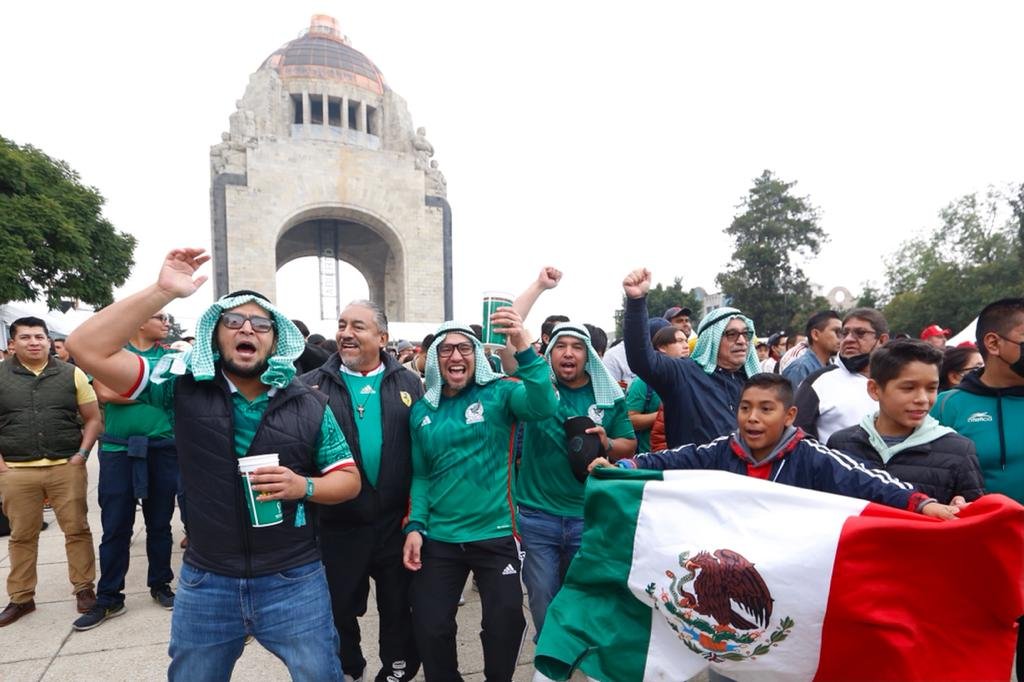 Ciudad de México, 22 de noviembre de 2022.- En punto de las 10 de la mañana y con el inicio de la transmisión del partido, cientos de aficionados al fútbol se dieron cita en el Monumento a la Revolución para disfrutar del encuentro entre las selecciones de México y Polonia que se celebró en el Mundial de Qatar 2022.