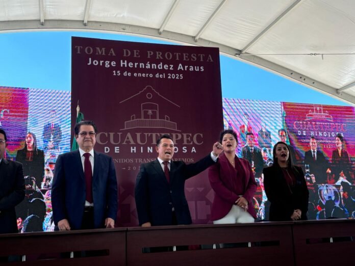 Tras haber ganado las elecciones extraordinarias, Jorge Hernández Araus, rindió protesta como presidente municipal constitucional de Cuautepec de Hinojosa, Hidalgo, para el periodo 2025-2027.