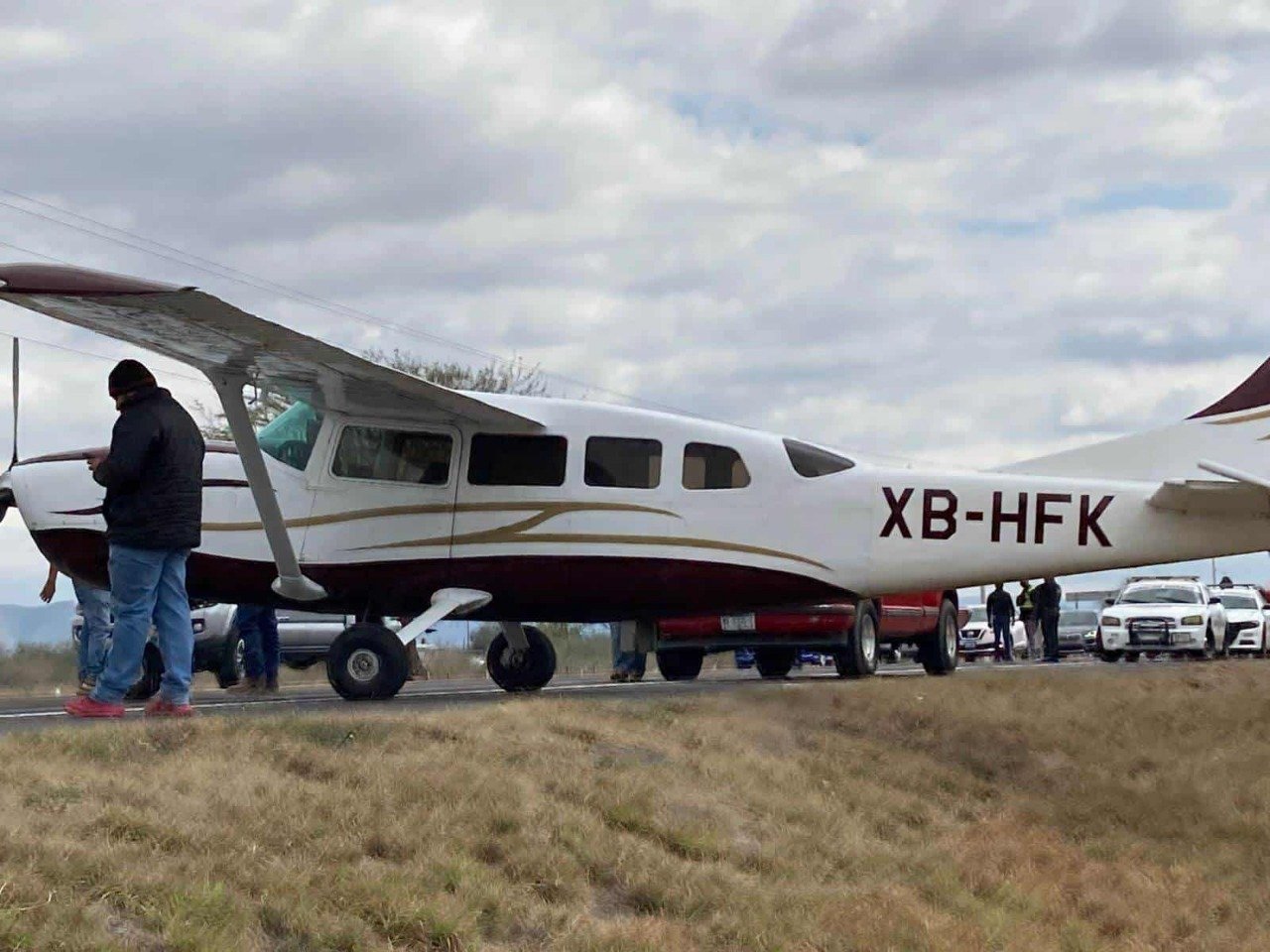 Derivado de una falla mecánica, una avioneta particular con placas XB-HFK, aterrizó de emergencia sobre la carretera Cerritos-Ríoverde en San Luis Potosí.