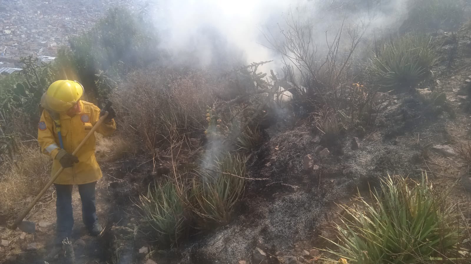 Elementos de atención y combate continúan trabajando en el lugar para contener y sofocar el fuego, mientras se mantiene el monitoreo constante de la zona para evitar mayores afectaciones.