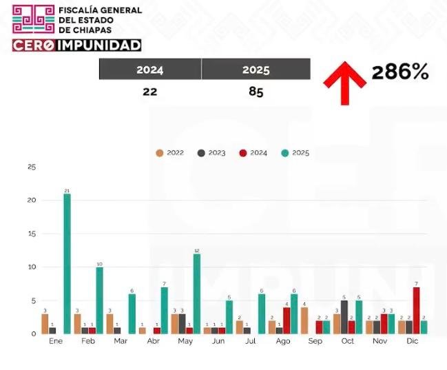 La ext0rsión fue el delit0 que más incrementó en Chiapas durante el último año, de acuerdo con cifras oficiales de la Fiscalía General del Estado, al pasar de 22 d3nuncias en 2024 a 85 casos registrados al cierre del año pasado.