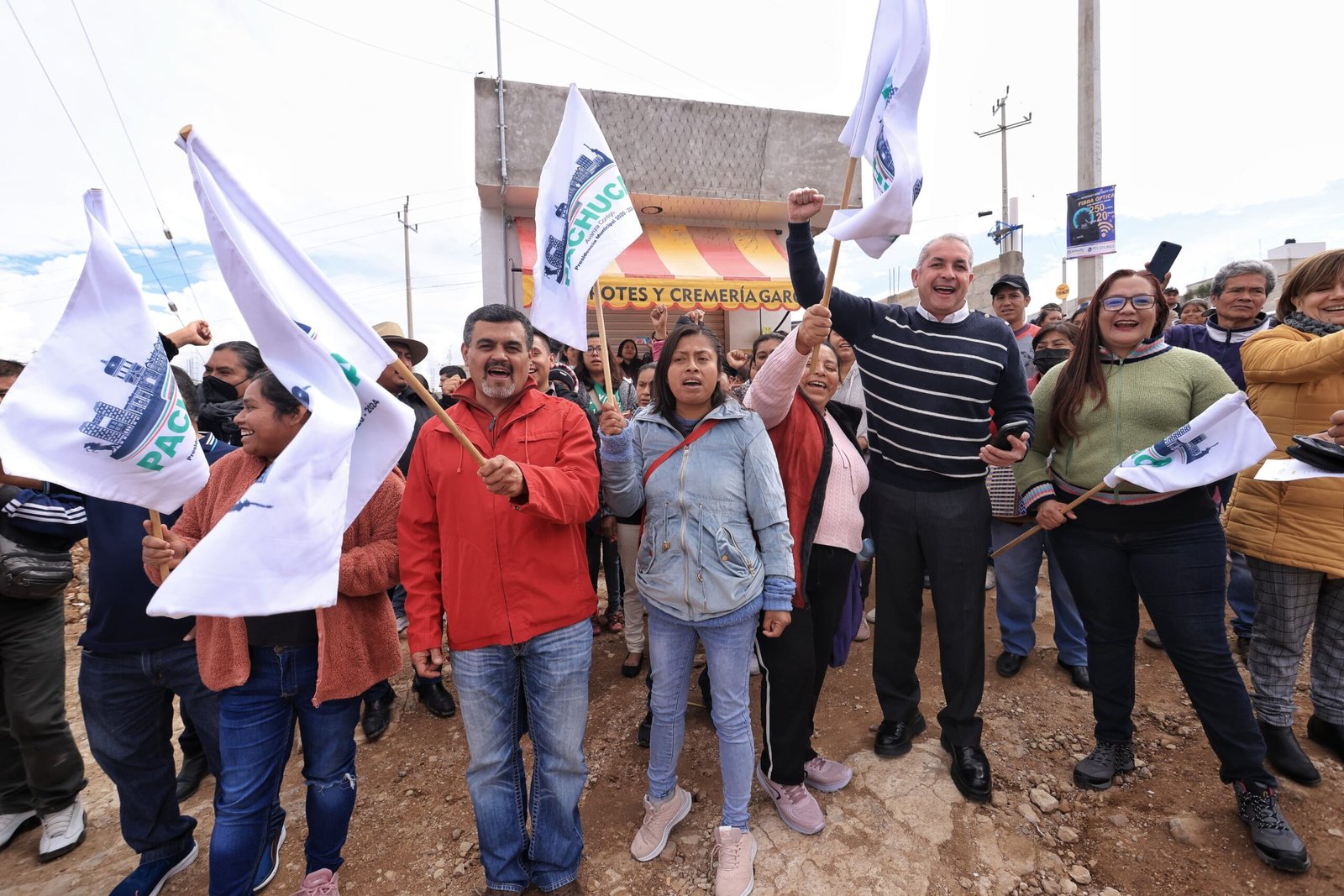 El presidente municipal de Pachuca, Sergio Baños Rubio, dio el banderazo de inicio a las obras de red de agua potable y alcantarillado que se realizarán en la colonia Margarita Morán Veliz y la comunidad de Santiago Tlapacoya.