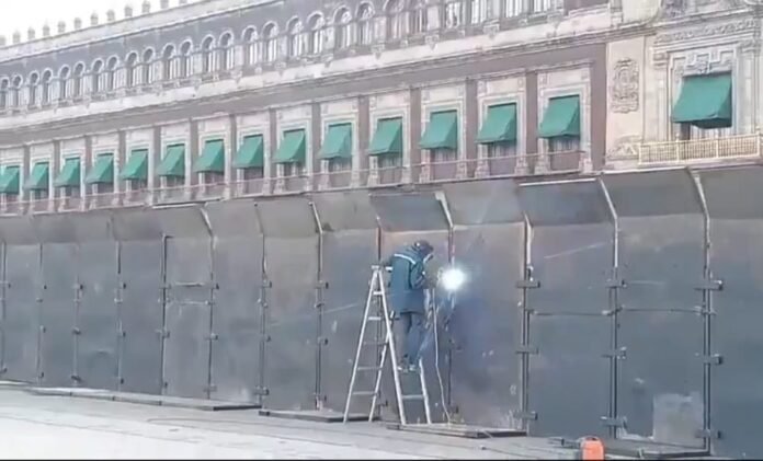 De acuerdo con personal del recinto, las estructuras comenzaron a colocarse durante la noche del lunes y se extendieron por los accesos principales del inmueble ubicado en el Zócalo capitalino, con el objetivo de proteger el edificio histórico durante la jornada de manifestaciones.