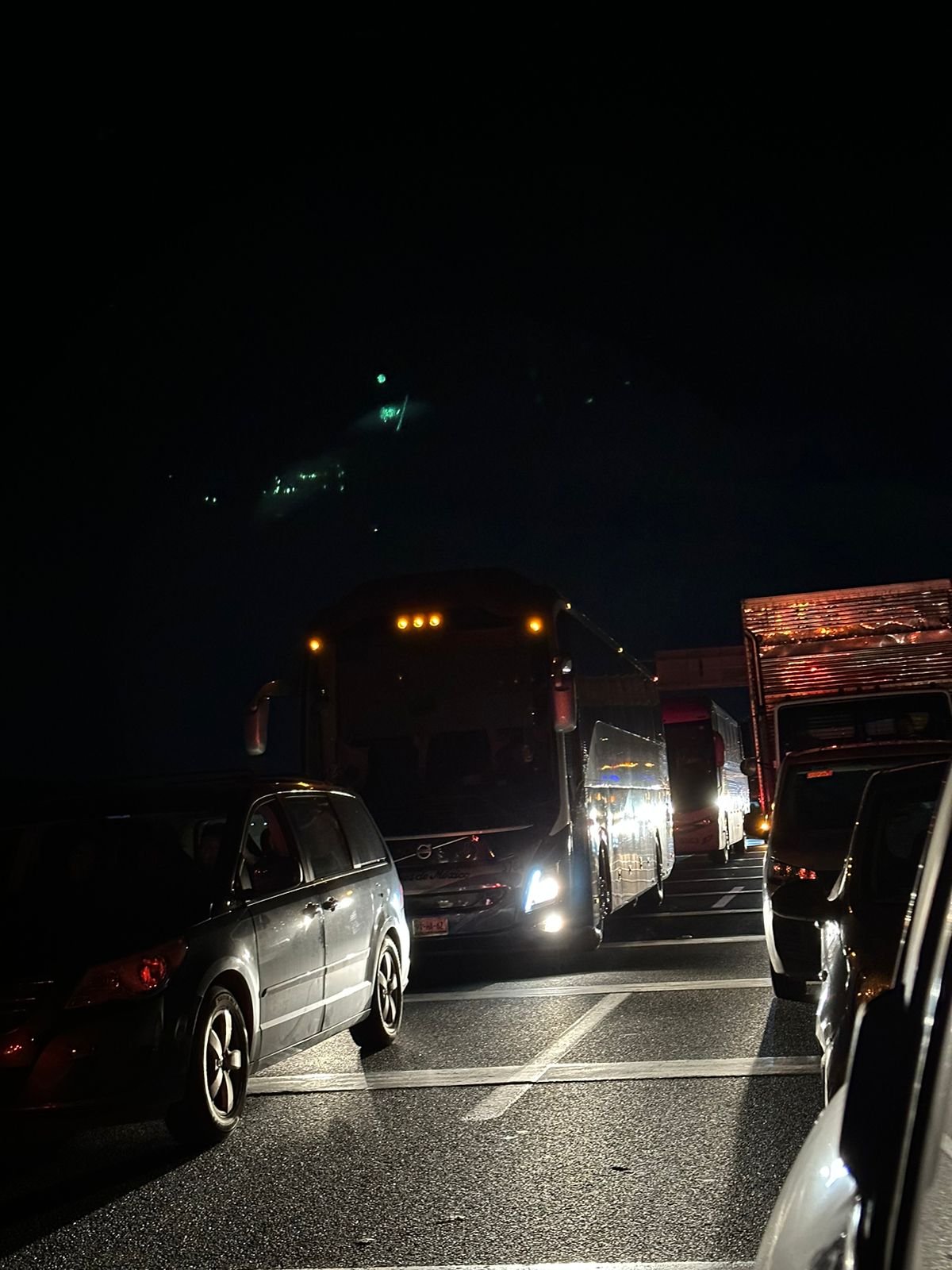 En medio de la noche/madrugada cientos de automovilistas buscaban entre los caminos vecinales rutas alternas para poder cruzar ese tramo del municipio de Nopaltepec.