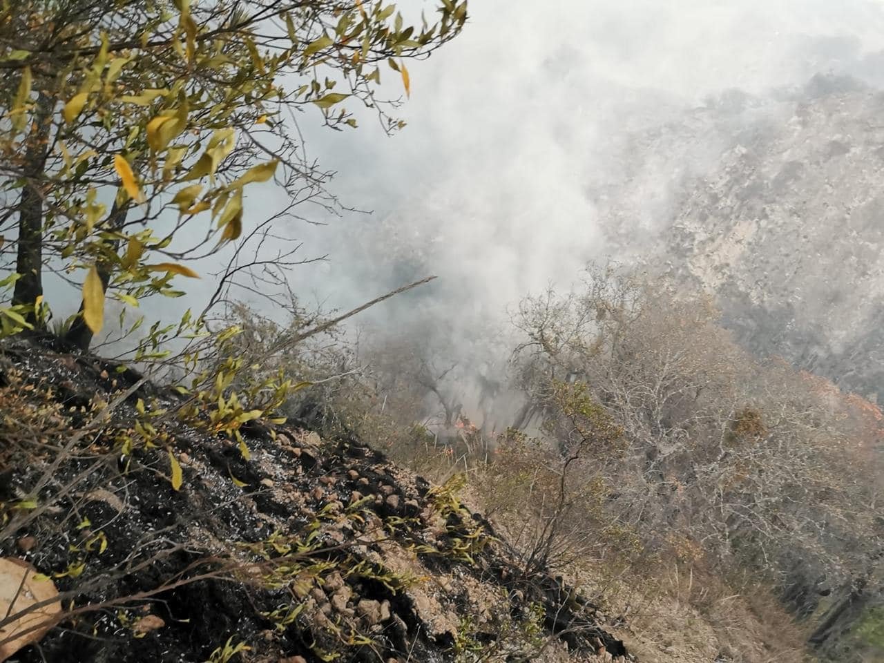 La Semarnath dio a conocer que las labores para sofocar el fuego activo continúan en la zona de Peña del Aire.