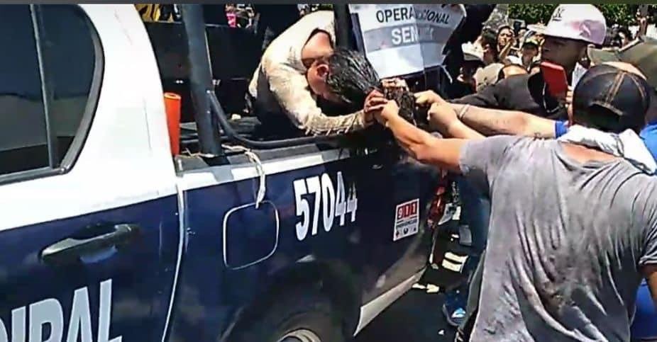 En otro video se ve como la gente les propina brutal golpiza, tras arrebatárselos a la policía, amenazando con quemarlos.