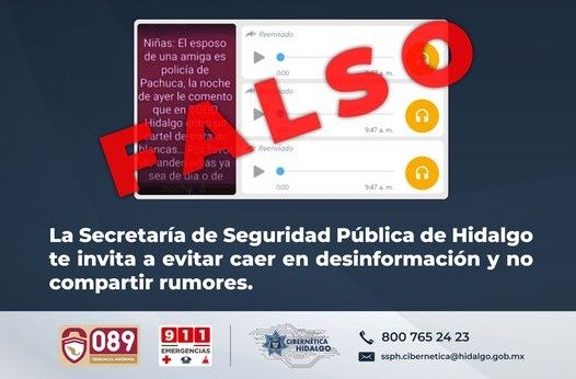 La Secretaría de Seguridad Pública de Hidalgo, informó que tanto las imágenes y los audios son falsos y únicamente quieren provocar psicosis entre la población.