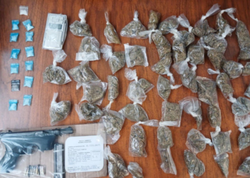 El sujeto, identificado con las iniciales A. M. G. de 48 años, transportaba hasta 78 bolsas de droga: 20 bolsas pequeñas de polvo con características de “cristal” y 58 bolsas de presunta marihuana. Además de un arma de fuego corta, calibre 22 milímetros, con ocho cartuchos útiles.