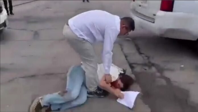Algunos videos en redes muestran cuando la mujer cae al suelo tras sujetarse a la camioneta en movimiento, donde viajaba el mandatario federal.