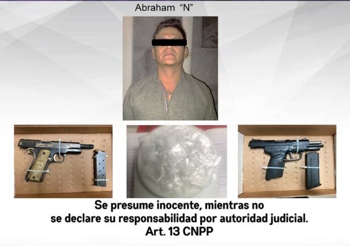 “Al estar ante un hecho real e inminente de peligro, los policías emprendieron los protocolos correspondientes y aseguraron al individuo dos armas de fuego abastecidas con varios cartuchos útiles, además de varias bolsitas plásticas que contenían una sustancia sólida con características similares al cristal.