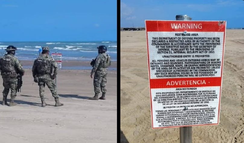 La protesta surgió también como respuesta a la aparición de seis letreros de advertencia clavados en la arena de Playa Bagdad, presuntamente instalados por personas que —de acuerdo con Conibio— cruzaron desde Estados Unidos por el río Bravo en una embarcación.