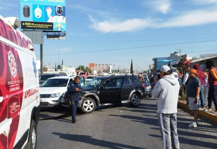 Una carambola entre tres vehículos sobre la carretera Pachuca-Actopan, dejaron un saldo de cinco personas lesionadas la mañana de este lunes 31 de marzo.