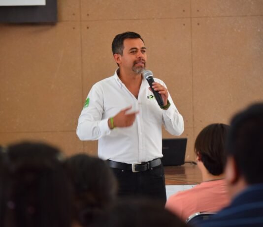 El candidato del PVEM a diputado local, conversó con estudiantes del CEUMH, donde se comprometió a proteger el agua.