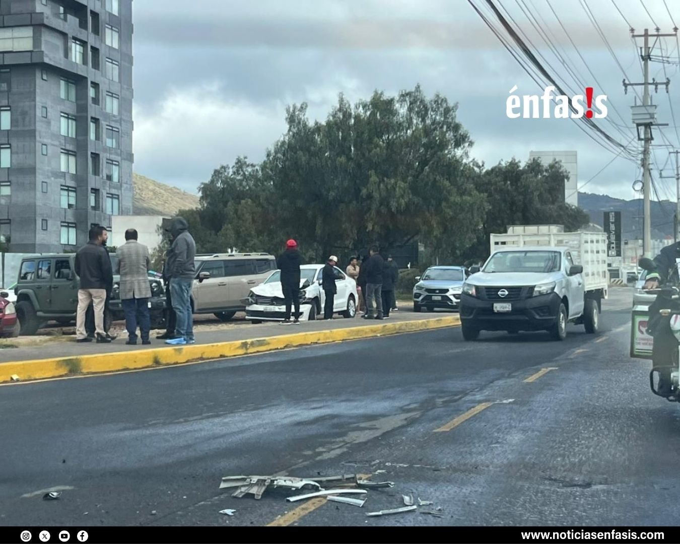 La mañana de este viernes se registró un choque entre dos vehículos particulares sobre el bulevar Ramón G. Bonfil, a la altura de la iglesia de San Charbel, en Pachuca, Hidalgo.