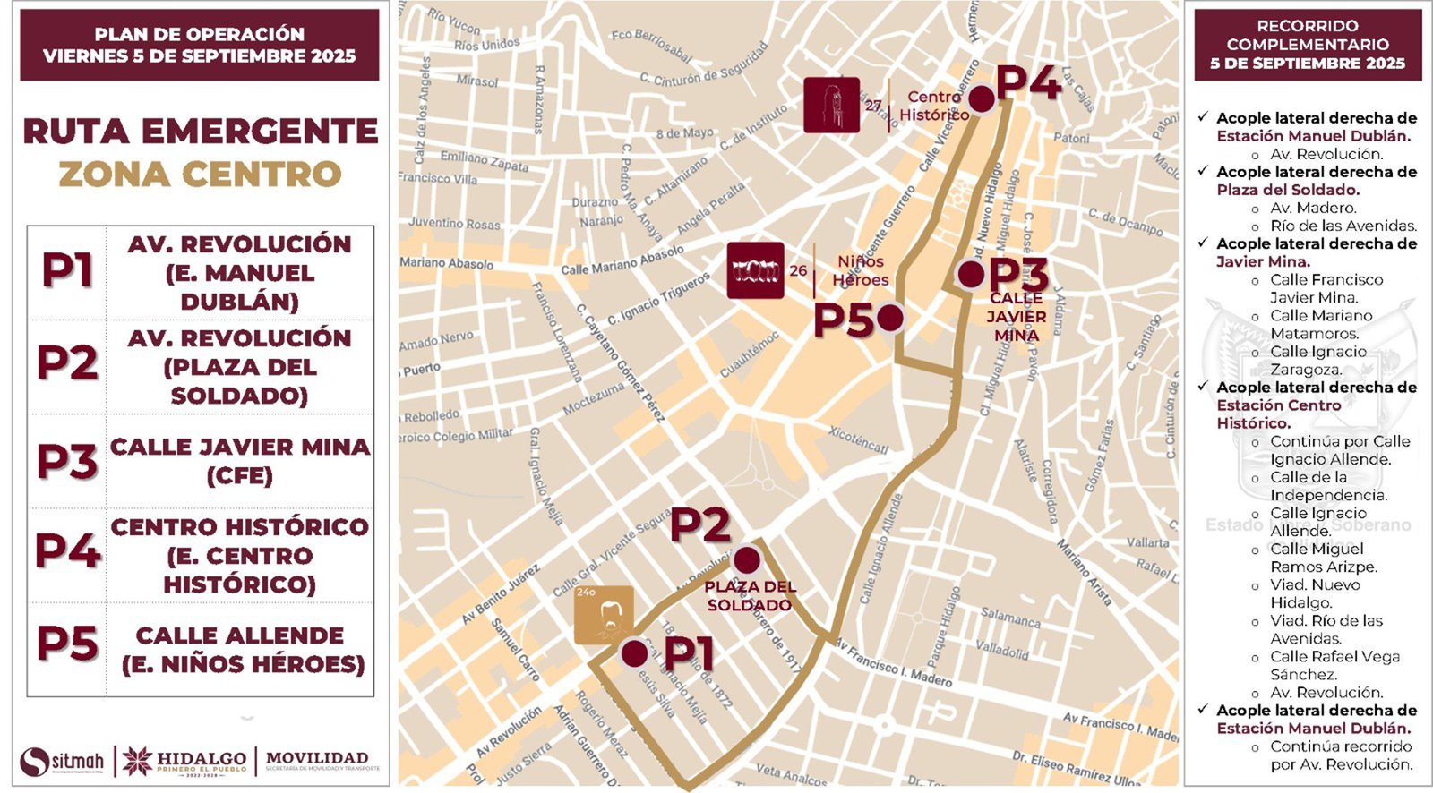 Movilidad anuncia la implementación de un operativo especial en la zona Centro de Pachuca este viernes 5 de septiembre, para garantizar el servicio a usuarios