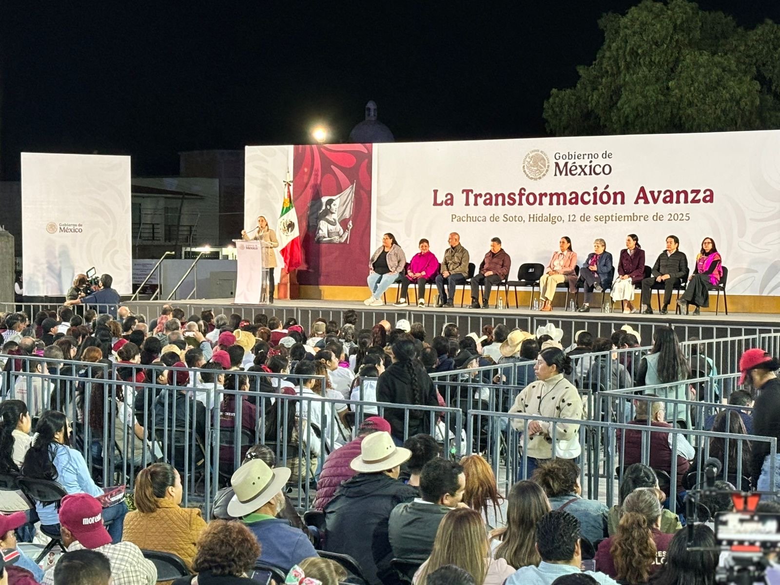 La presidenta de México, Claudia Sheinbaum Pardo, visitó Hidalgo como parte de la gira nacional La Transformación Avanza, donde presentó los avances de su primer año de gobierno y anunció una inversión superior a 27 mil millones de pesos en apoyos sociales y proyectos estratégicos para la entidad.