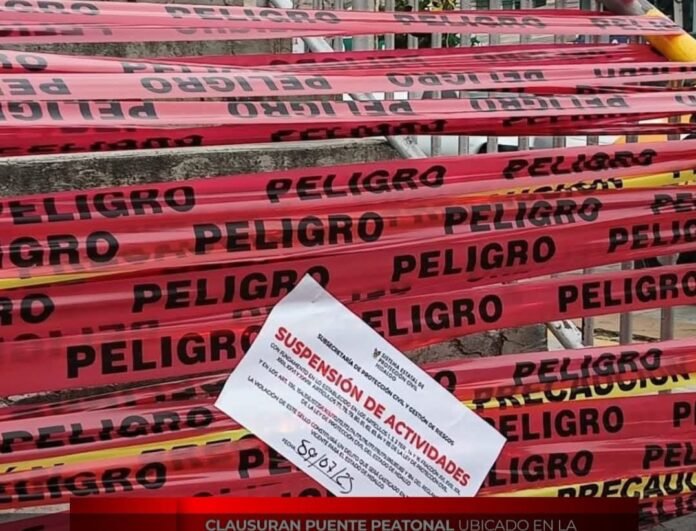 Protección Civil estatal confirma deterioro estructural agravado por anuncios publicitarios; el puente peatonal podría ser demolido tras evaluación técnica