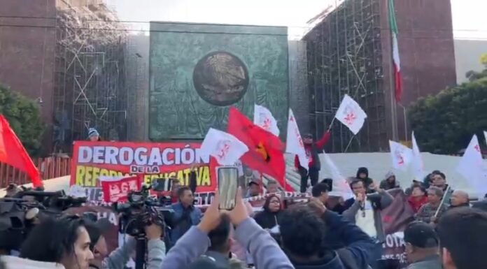 Integrantes de la Coordinadora Nacional de Trabajadores de la Educación (CNTE) instalaron un plantón frente a la Cámara de Diputados, donde lanzaron una advertencia al Gobierno de México: boicotearán el Mundial 2026 si sus demandas no son atendidas.