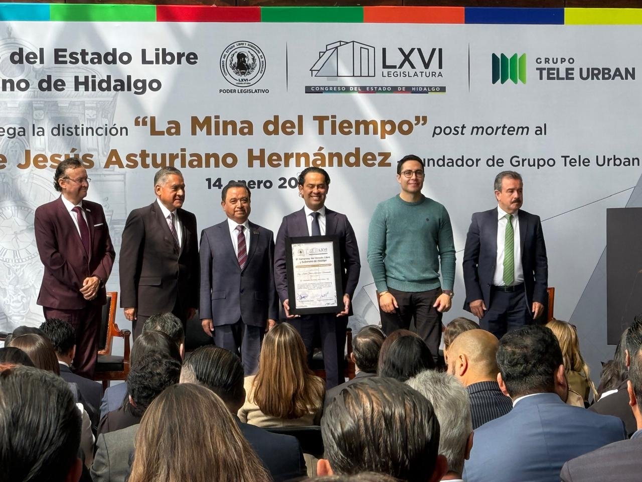 El Congreso del Estado de Hidalgo entregó el reconocimiento “La Mina del Tiempo” de manera Post mortem al empresario hidalguense Jaime Jesús Asturiano Hernández, fundador de Tele Urban, empresa con presencia en seis estados del país.