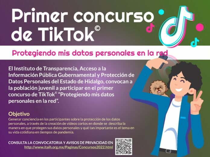 Pachuca, Hidalgo, 13 de abril de 2022.- El próximo 2 de mayo, vence el plazo para participar en el Primer Concurso de TikTok “Protegiendo mis Datos Personales en la Red” organizado por el Instituto de Transparencia, Acceso a la información Pública Gubernamental y Protección de Datos Personales del Estado de Hidalgo (ITAIH).
