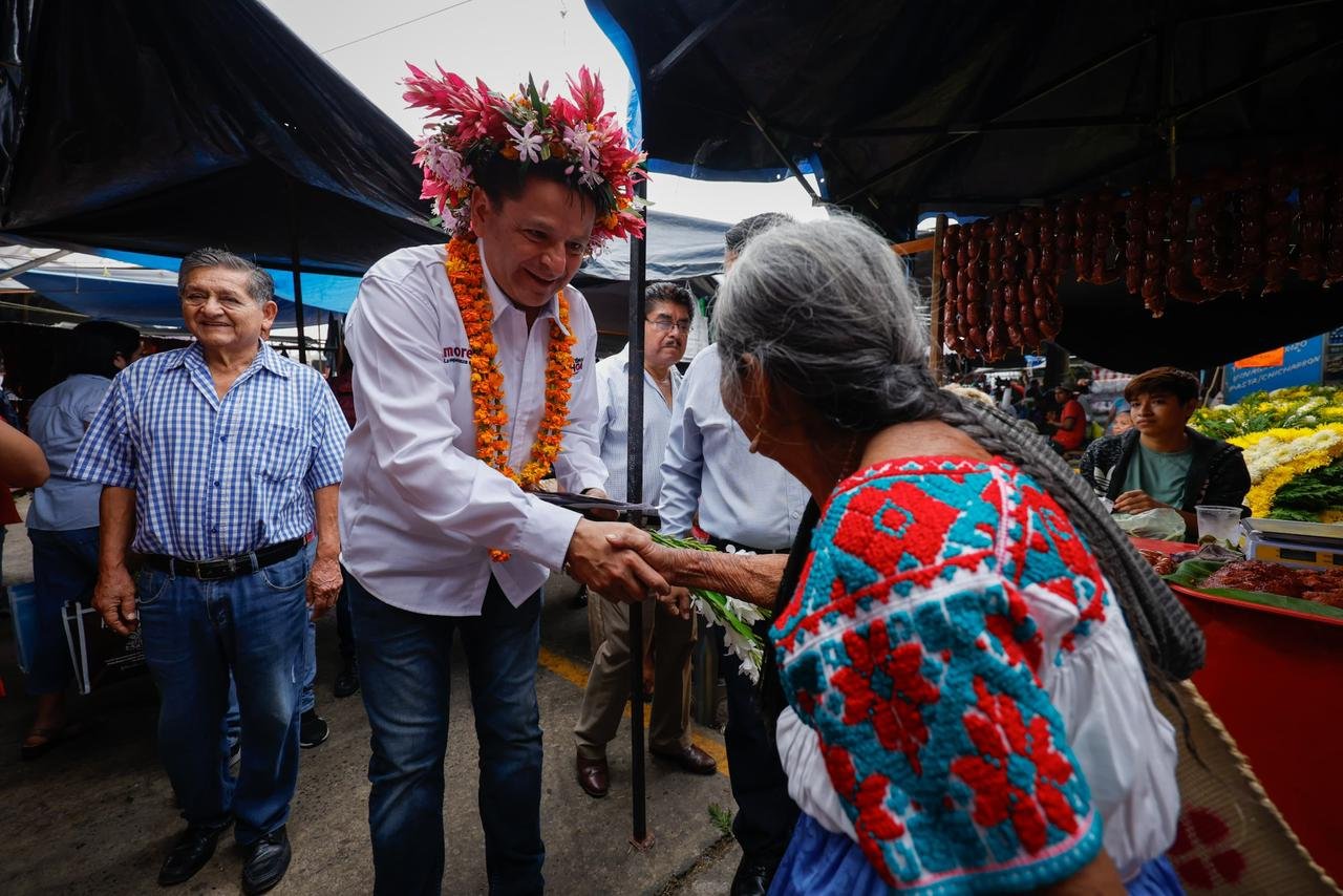 En su recorrido por el tianguis de Huejutla, los locatarios reconocieron su gestión como secretario de Turismo, especialmente por el rescate del Centro Histórico.