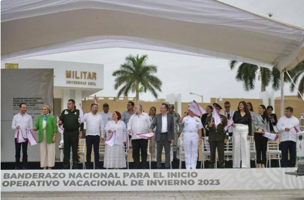 Miguel Torruco Marqués, secretario de Turismo, y el gobernador de Veracruz, Cuitláhuac García Jiménez, dieron inicio al Operativo Vacacional Invierno 2023. El banderazo se llevó a cabo en la Heroica Escuela Naval Militar, en Alvarado, donde participaron autoridades de las tres órdenes de gobierno.