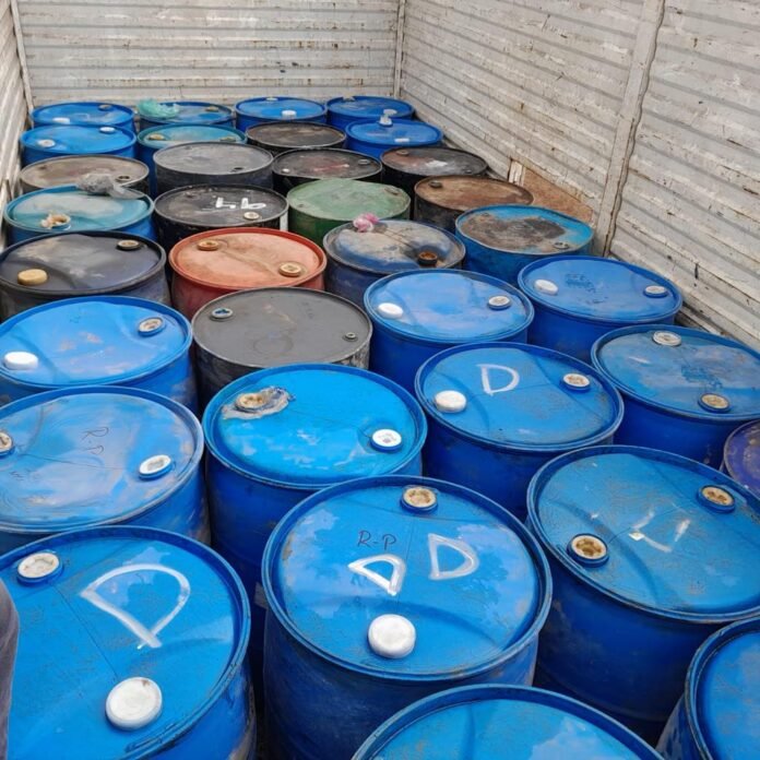 En la bodega clandestina fueron hallados 69 tambos con capacidad para 200 litros, cada uno, abastecidos al 90 por ciento de combustible.