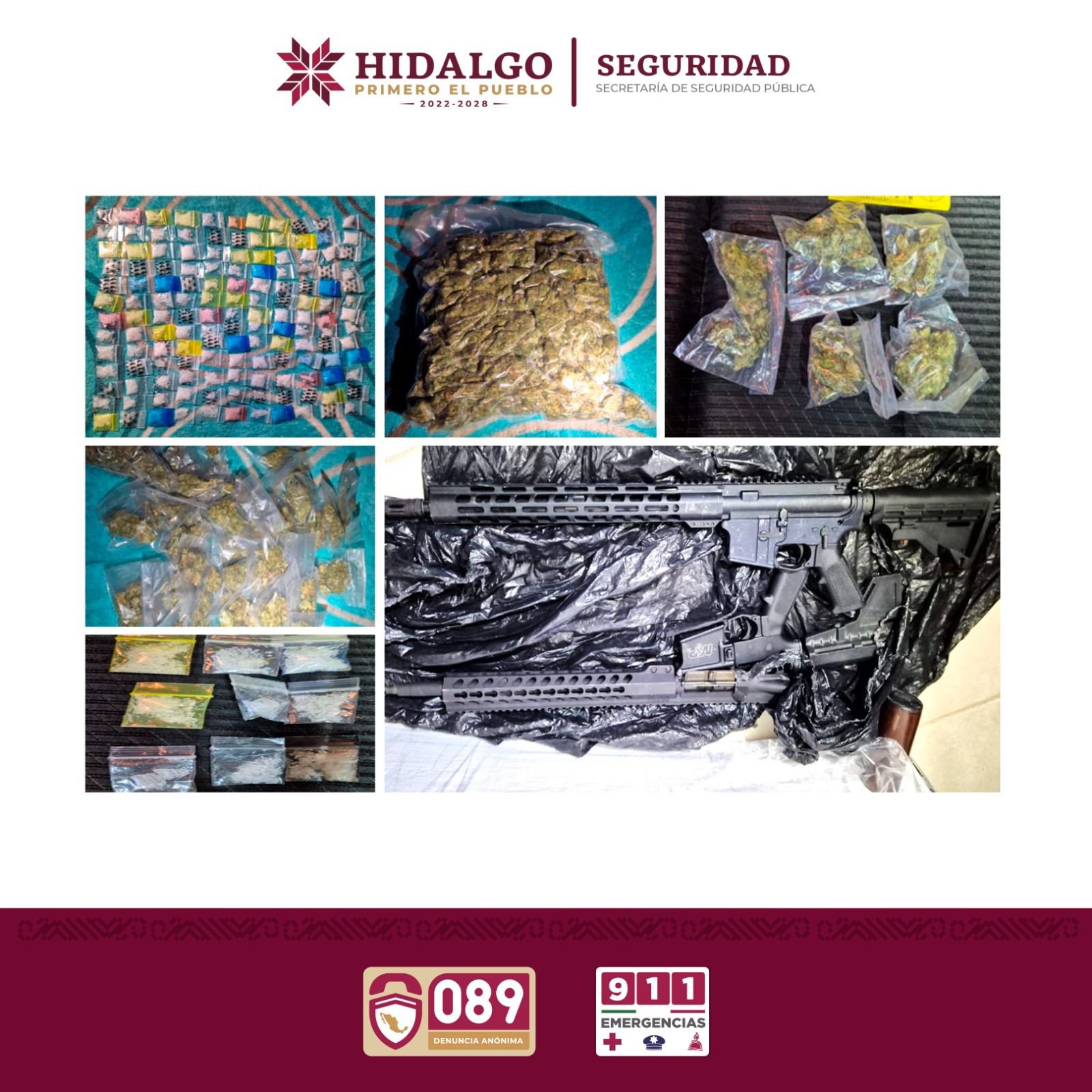Elementos de la Secretaría de Seguridad Pública de Hidalgo (SSPH) aseguraron un total de 2,782 dosis de presunta droga y dos armas largas durante un operativo en el fraccionamiento Lomas de la Plata, al sur de Pachuca.