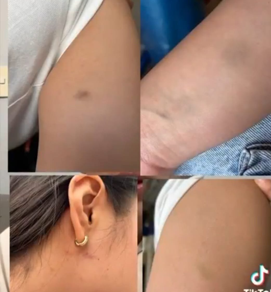 Una de las víctimas relató que su pareja fue jaloneada, empujada y tirada al suelo en varias ocasiones, mientras que él fue golpeado y ahorcado por la espalda. Otro joven resultó con mordidas y lesiones visibles. Además, todos fueron retenidos dentro del lugar hasta que borraron los videos de las agresiones.