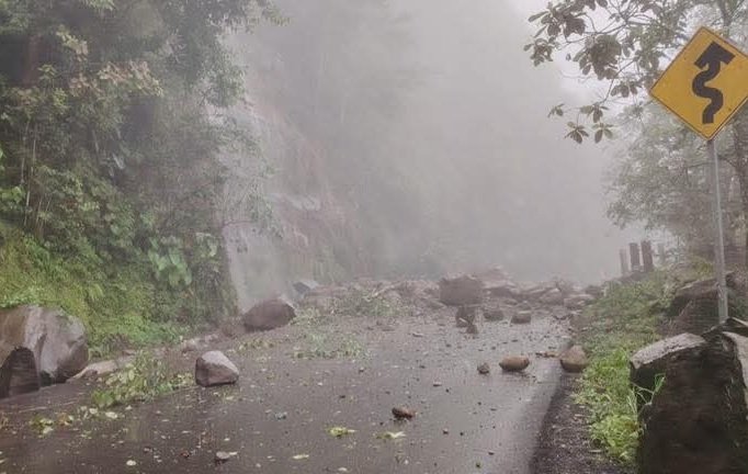 De acuerdo con autoridades estatales, los cerros se desgajaron en distintos puntos, lo que ocasionó el bloqueo parcial y total de la vía en algunos sectores.
