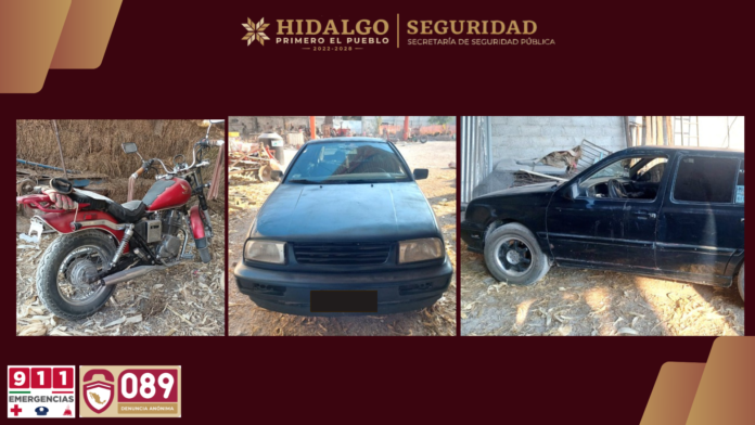 En el sitio también fueron asegurados un vehículo tipo sedán y una motocicleta, esta última con reporte de robo vigente, lo que permitió ampliar las líneas de investigación sobre estos hechos y su posible relación con otras conductas delictivas registradas en la zona.