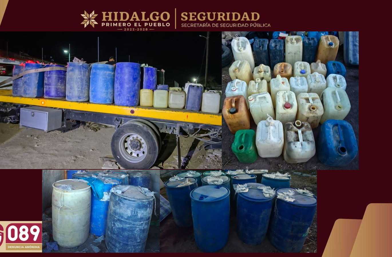 Más de 2 mil 190 litros de hidrocarburo fueron asegurados en la colonia Las Haciendas, en el municipio de Tepeapulco, como resultado de un operativo coordinado por la Secretaría de Seguridad Pública de Hidalgo, en conjunto con la Procuraduría General de Justicia del Estado de Hidalgo y la Secretaría de la Defensa Nacional.