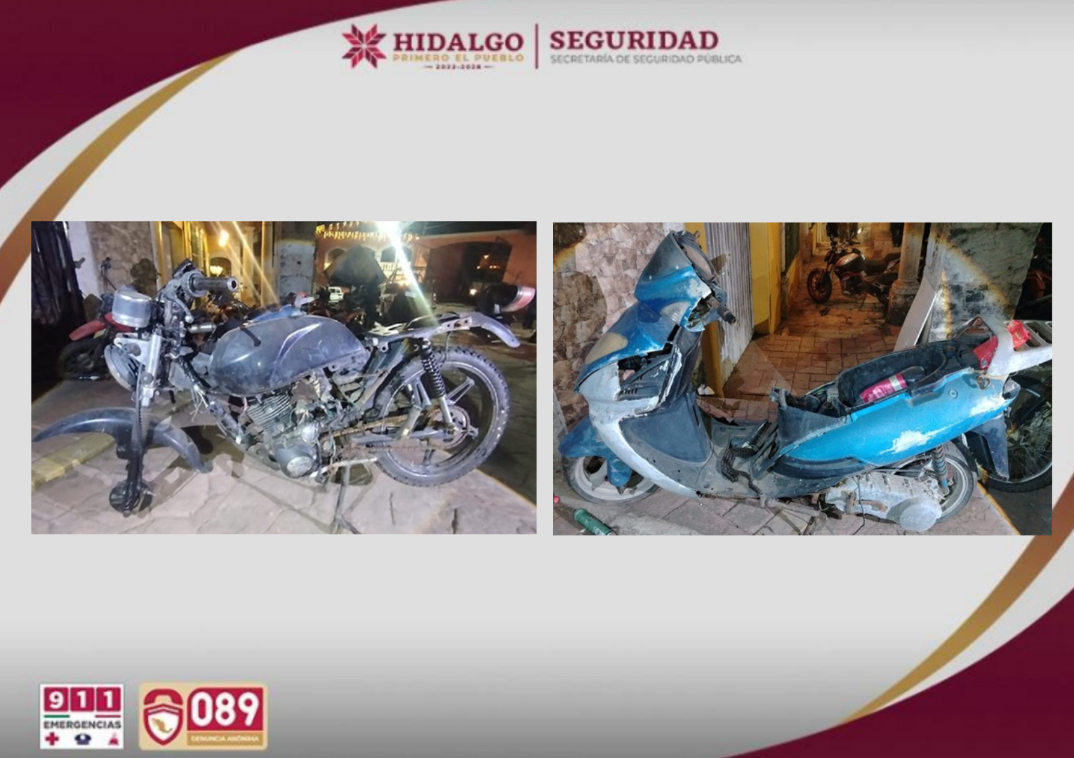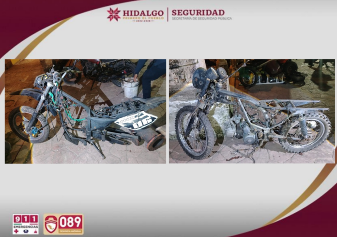 SSPH, PGJEH y Sedena aseguran a dos personas, motocicletas robadas, droga y un arma artesanal en Tianguistengo Hidalgo