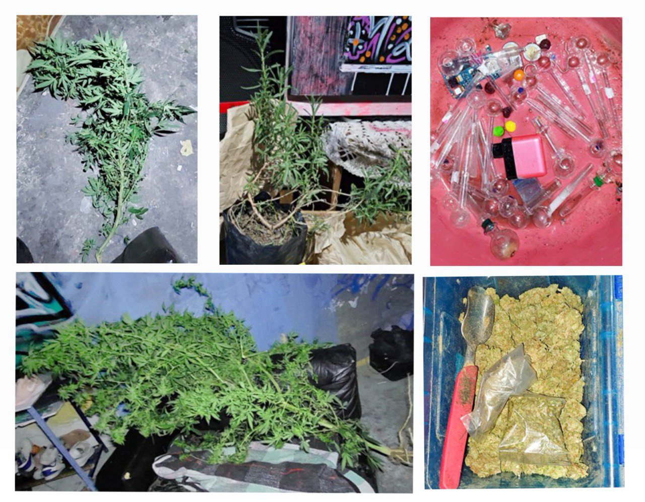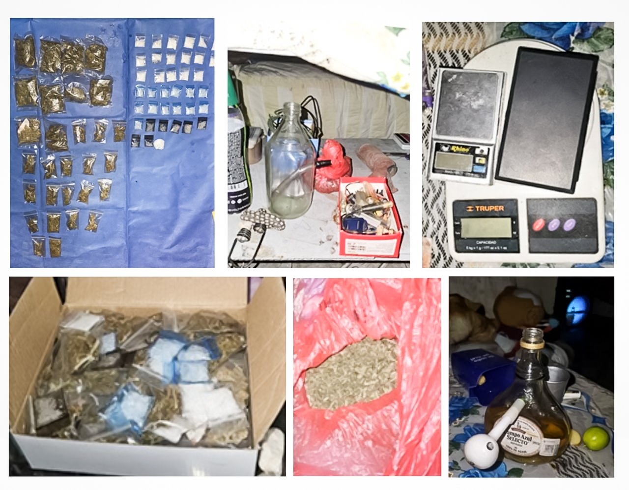 Durante el cateo se decomisó un total de 2 mil 481 dosis de diversas sustancias tóxicas, además, se encontraron 2 plantas de presunta marihuana y una variedad de pipas y aditamentos relacionados con el consumo de sustancias ilícitas.
