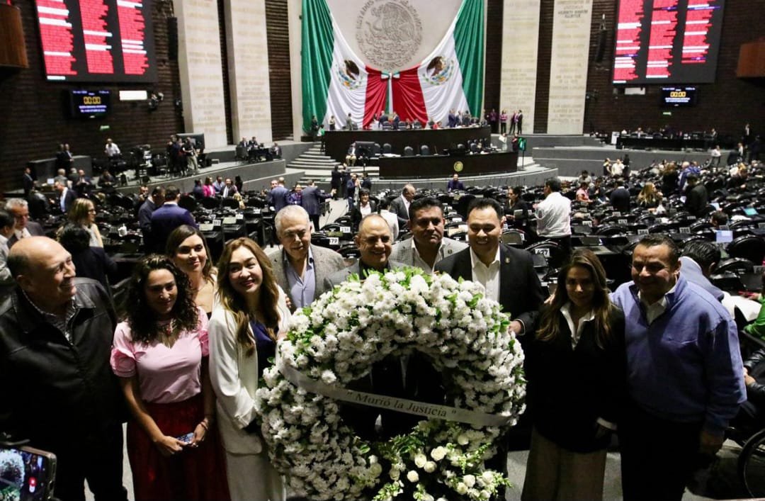 En señal de protesta, legisladores del PRI llevaron una corona de flores al Pleno con la leyenda «Murió la justicia». Pero eso si se les ve incongruentes
